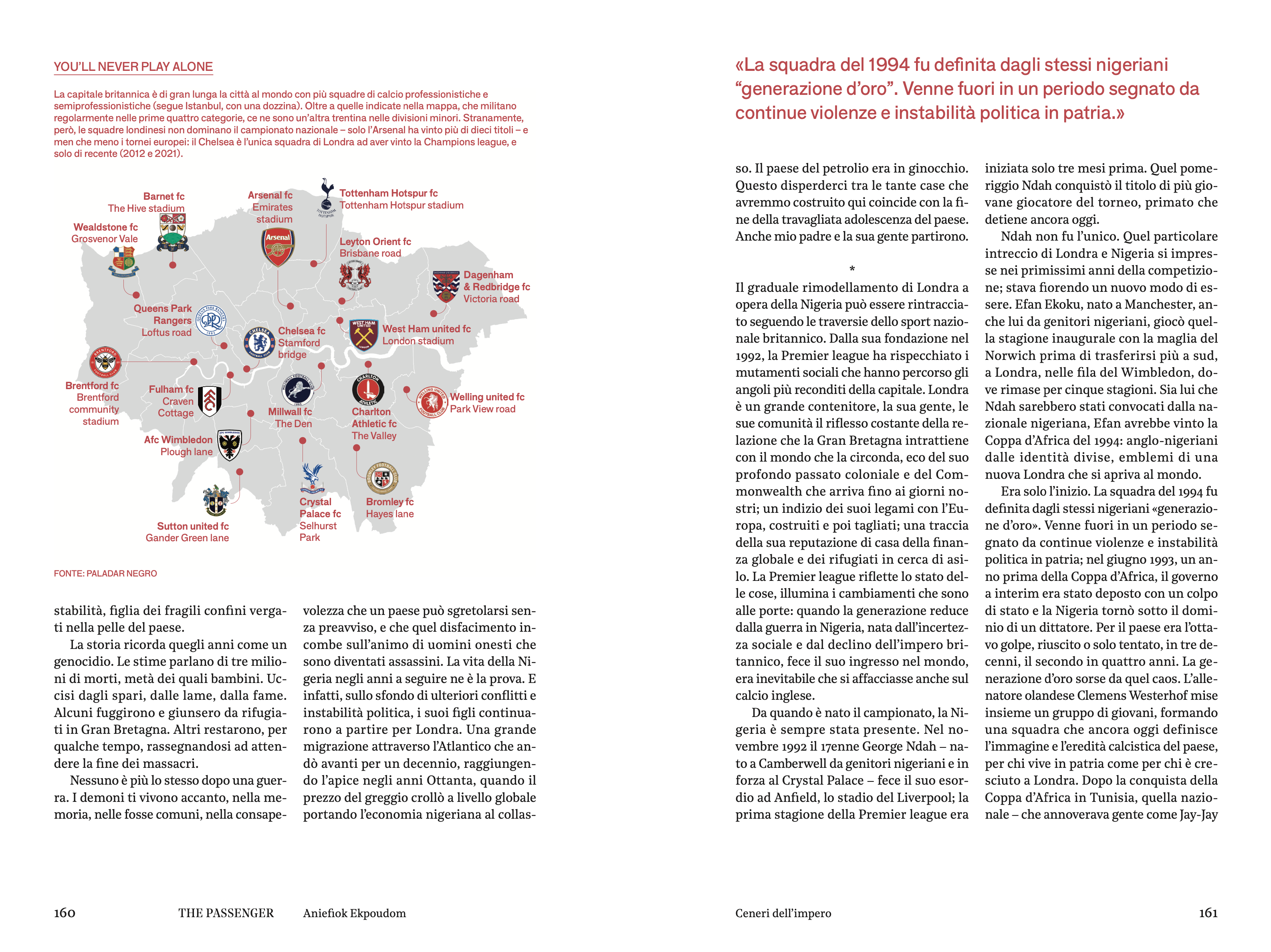 Londra è la casa di tantissime persone di origine nigeriana, che hanno visto nell’affermazione dei loro connazionali nel calcio inglese un segno di riscatto, ma anche la conferma di un’identità ancora divisa tra due continenti e tra due nazionali.